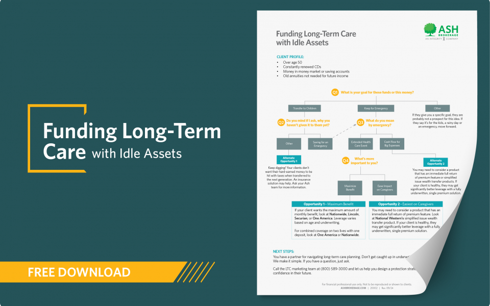 For clients with assets that are not generating key income, a great conversation starter is "What is your goal for this money?" If the discussion follows the path we commonly see, a few more questions could lead to a more suitable product solution. Follow this flowchart for more.