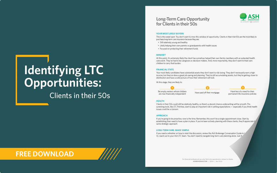 This is the sweet spot for LTC sales. Clients in their mid-50s are the most likely to purchase long-term care insurance because they are still earning income, but need to have a solid picture of how their retirement will look. See what to look for so you don’t miss a window of opportunity.