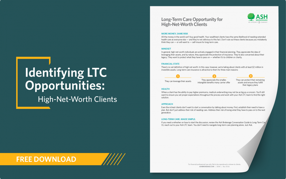 All the money in the world can’t buy good health. Your wealthiest clients have the same likelihood of needing extended health care as everyone else – and they know it. Don’t rule out these clients because you mistakenly think they can – or want to – self-insure for long-term care.