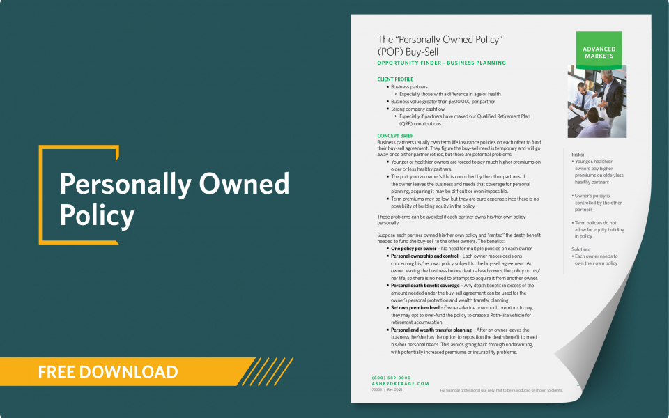 Business partners often own term life insurance policies on each other to fund a buy-sell agreement. They figure the buy-sell need is temporary and will go away once either partner retires, but there are problems that can be avoided by each partner owning their own policy.